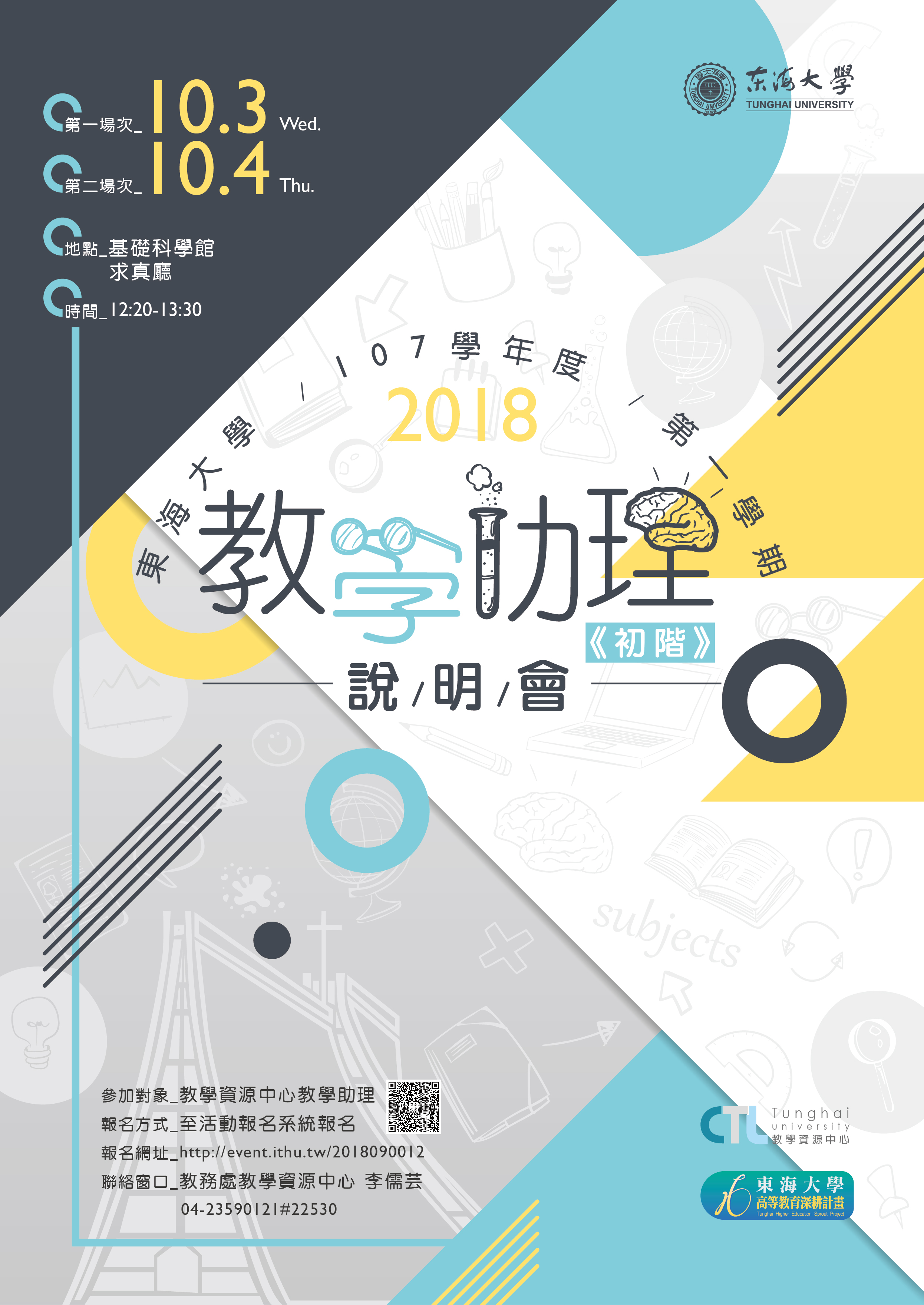 107年10月03日(三) 12:20-13:30 【107-1 教學助理初階說明會(ㄧ)】