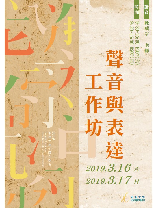 講者陳威宇,為知名唱片公司、娛樂經紀公司藝人歌唱指導,專事音樂劇歌唱指導、演員聲音訓練、教會敬拜團歌唱訓練、歌唱比賽評審。將在為期 2 天的工作坊,講述以下主題:1. 透過發聲釋壓與發聲問題改善;2. 發聲的重訓、發聲基礎入門;3. 破除音量及音域的恐懼-進階發聲思維訓練;4. 情緒詮釋與發聲連結。透過主題式的學習,參與本工作坊的學員將習得正確的咬字及發聲動作,避免聲音不適,讓講話或歌唱發聲更加輕省,突破原本的聲音限制,自由的展現聲音的魅力。