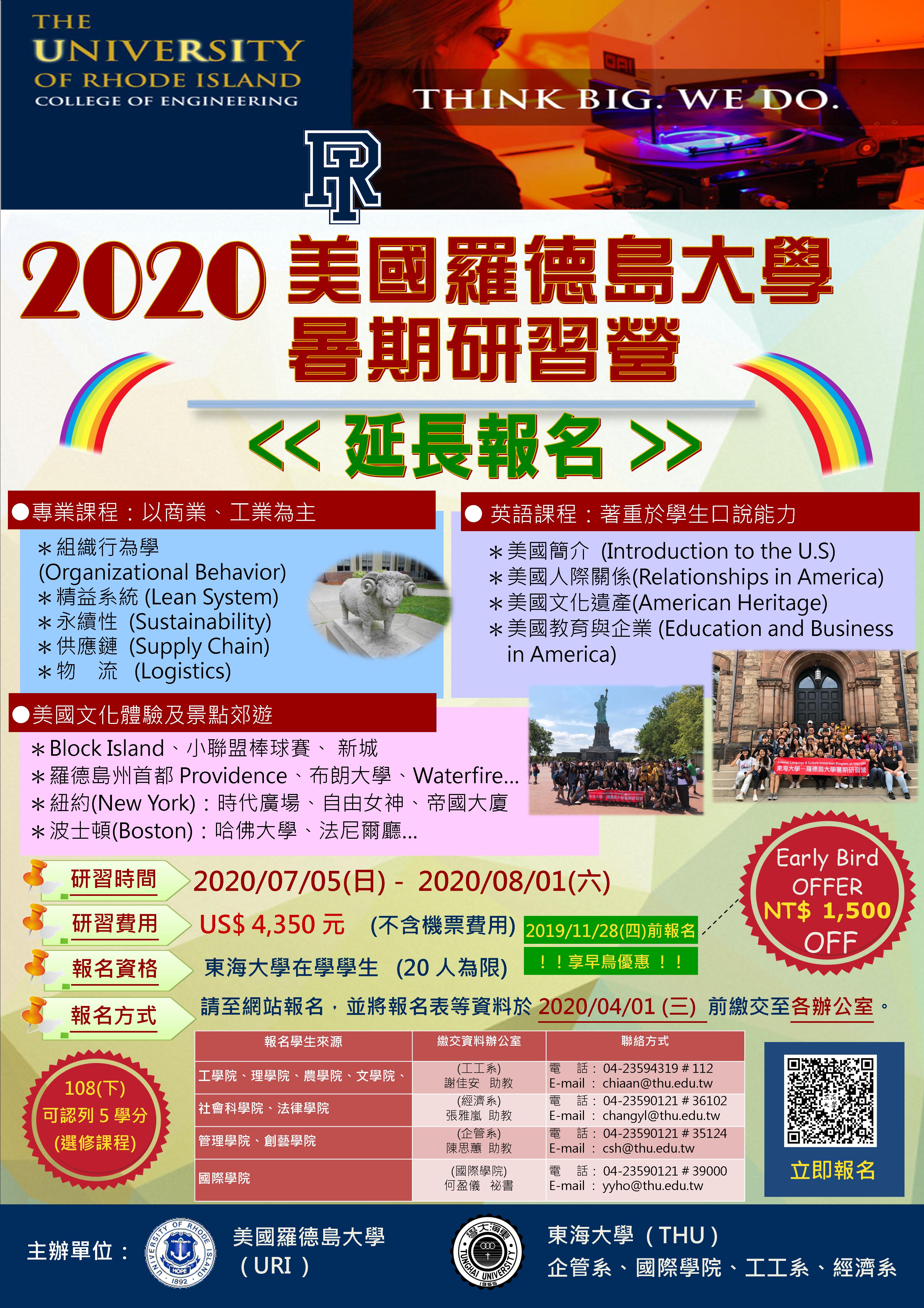 2020 美國羅德島大學(URI)暑期研習營