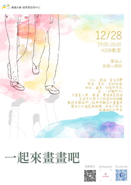| 一起來畫畫吧 加入Google行事曆 | H208 | 2021-12-28 ~ 2021-12-28 | 19:00 ~ 20:00 | 1 | 40 | 20 |