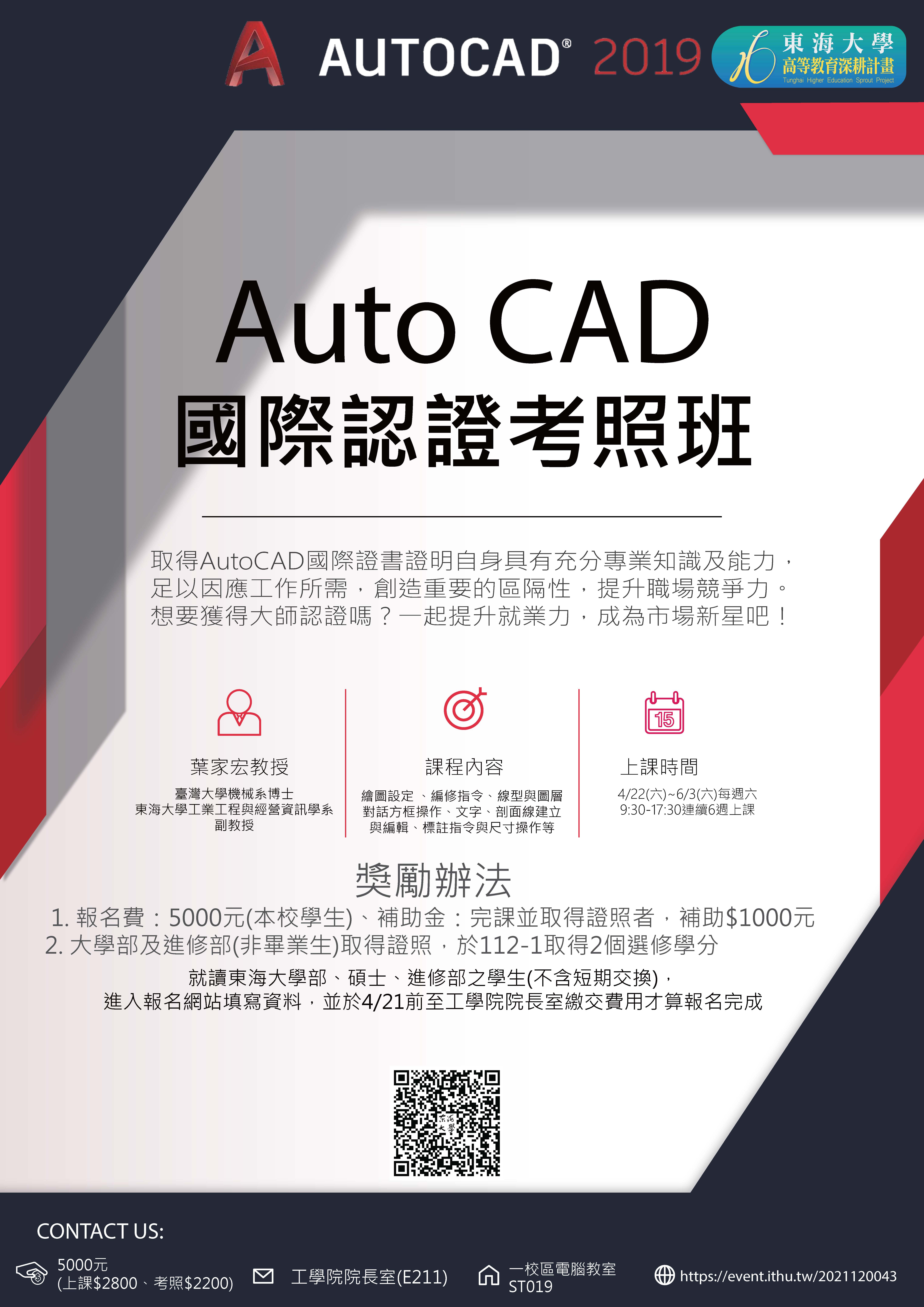 | AutoCAD 國際認證考照班111-2 加入Google行事曆 | 一校區電腦教室ST019教室 | 2023-05-06 ~ 2023-05-06 | 09:30 ~ 17:30 | 7 | 50 | 8 |