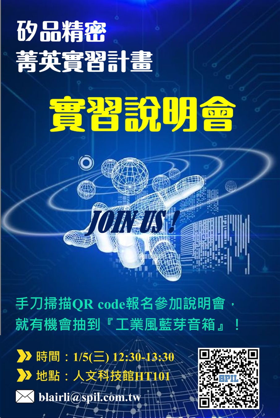 | 菁英實習計畫說明會 加入Google行事曆 | HT101 | 2022-01-05 ~ 2022-01-05 | 12:30 ~ 13:30 | 1 | 30 | 32 |