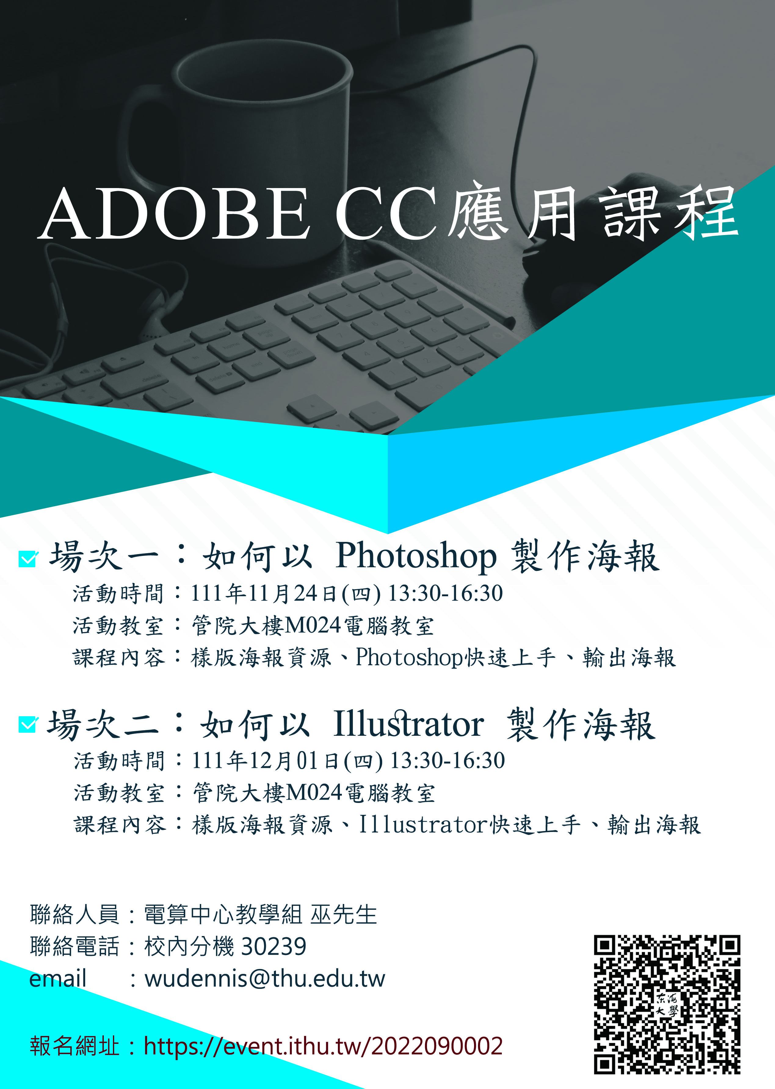 歡迎報名參加Adobe CC應用課程,祝您健康愉快!