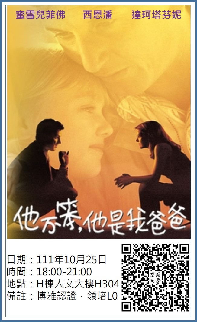 | 特教宣導電影-他不笨,他是我爸爸(博雅認證,領培L0) 加入Google行事曆 | 人文大樓H304(暫定) | 2022-10-25 ~ 2022-10-25 | 18:00 ~ 21:00 | 3 | 50 | 42 |