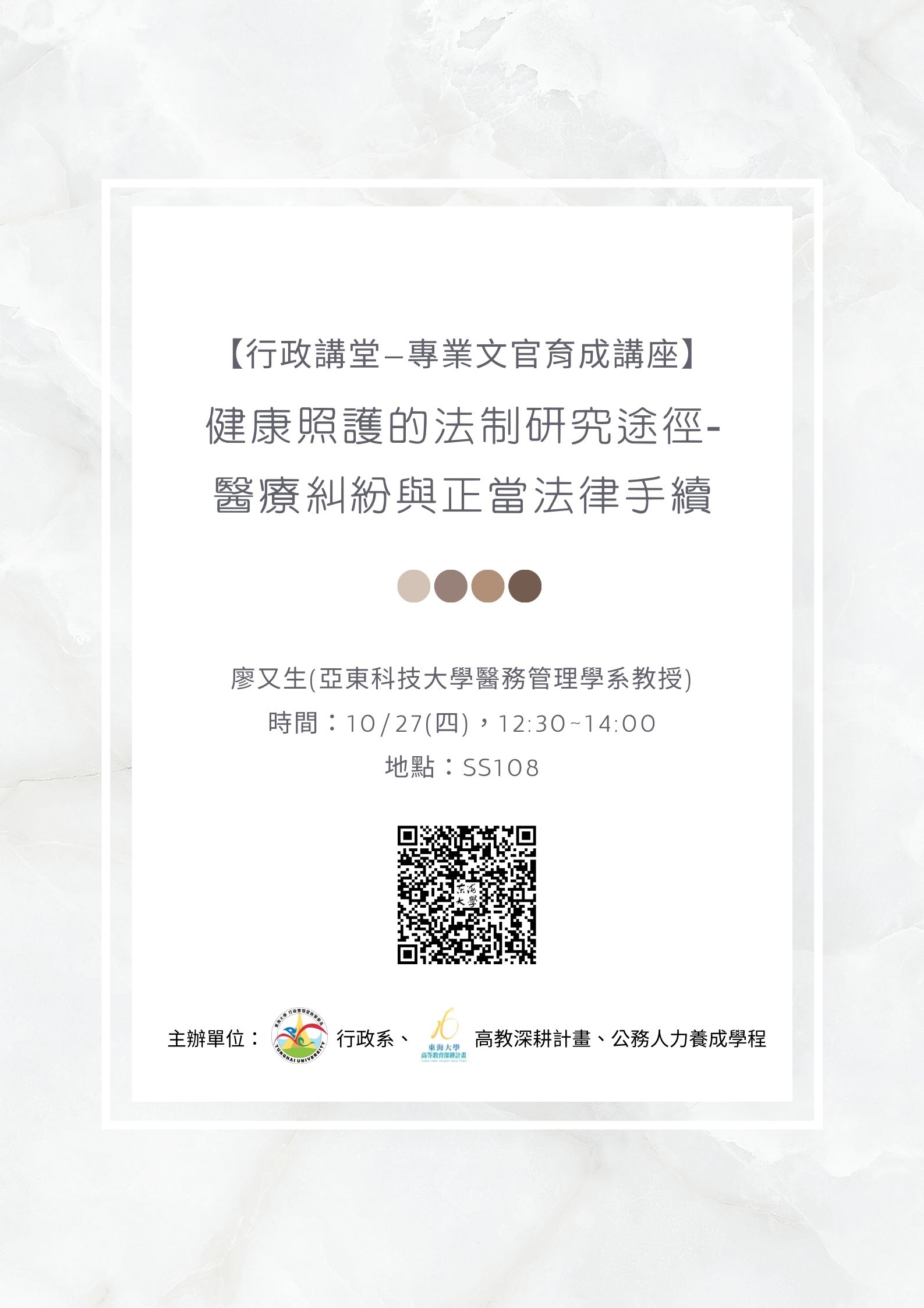 主辦單位:行政系、高教深耕計畫、公務人力養成學程