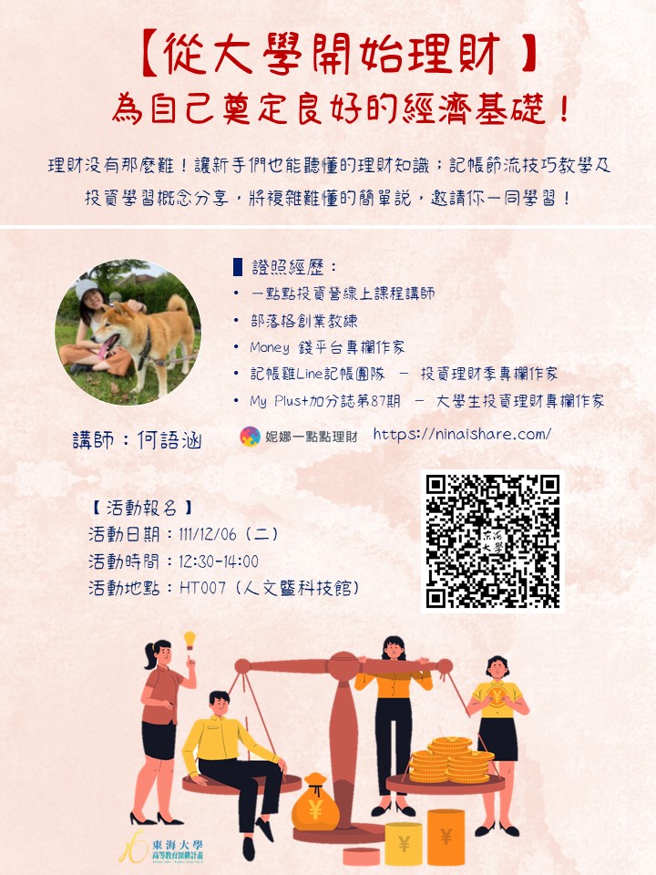 ✧領培L0—【從大學開始理財】為自己奠定良好的經濟基礎!-12/6 講者: 何語涵 / 妮娜一點點理財創辦人