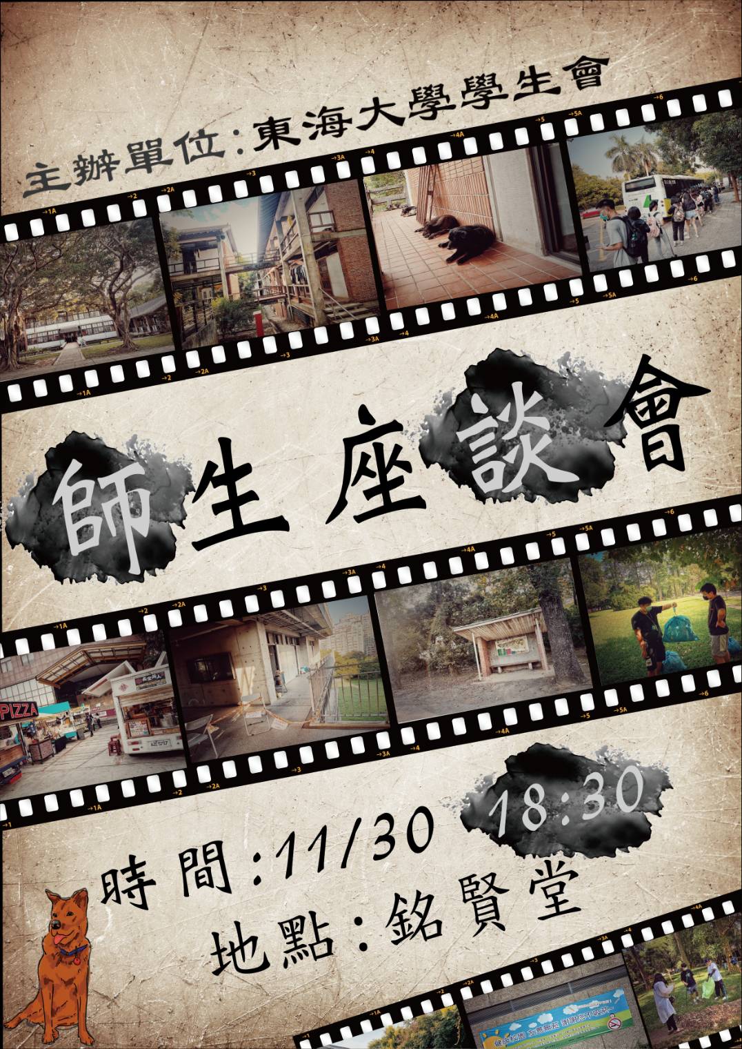 『師生座談會』辦理目的主要讓同學們在就學期間有機會與校方師長面對面談論校務課題、學生權益以及學校未來整體規劃等校內事務,除了解決學生問題以及增加對校園事務認識外,也能拉近師生之間關係並一同正視東海這片校園所存在的問題,創造所謂的東海核心價值-求真、篤信、力行。