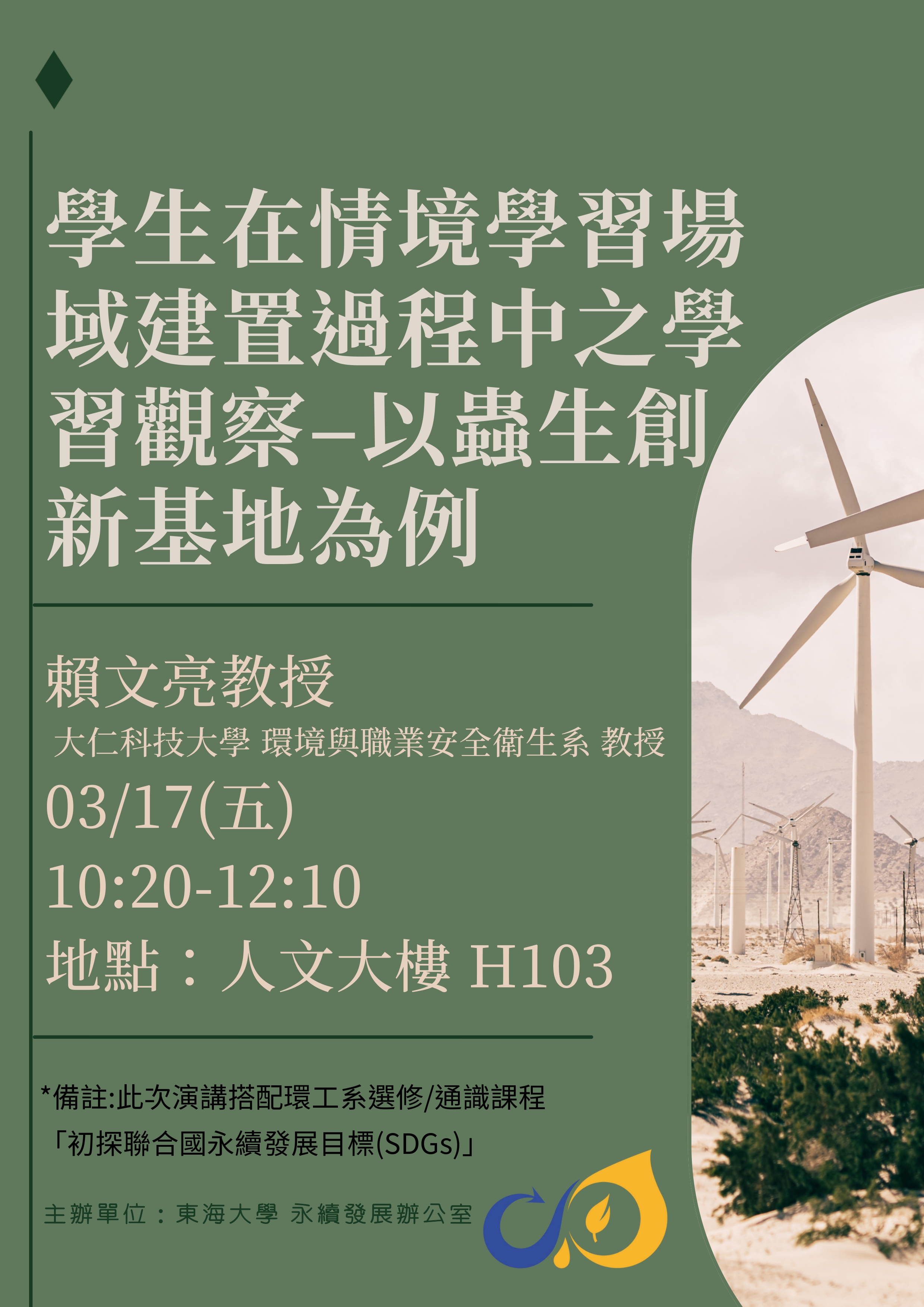 演講題目:學生在情境學習場域建置過程中之學習觀察–以蟲生創新基地為例