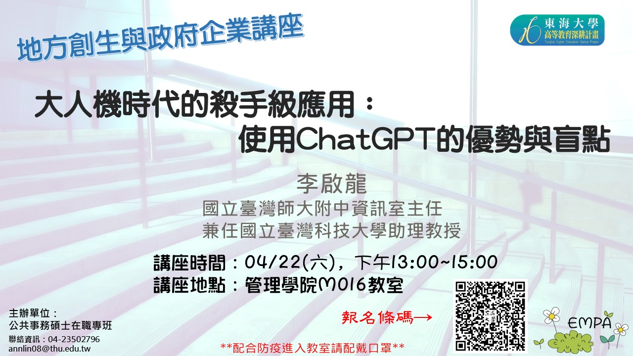 講題:大人機時代的殺手級應用:使用ChatGPT的優勢與盲點