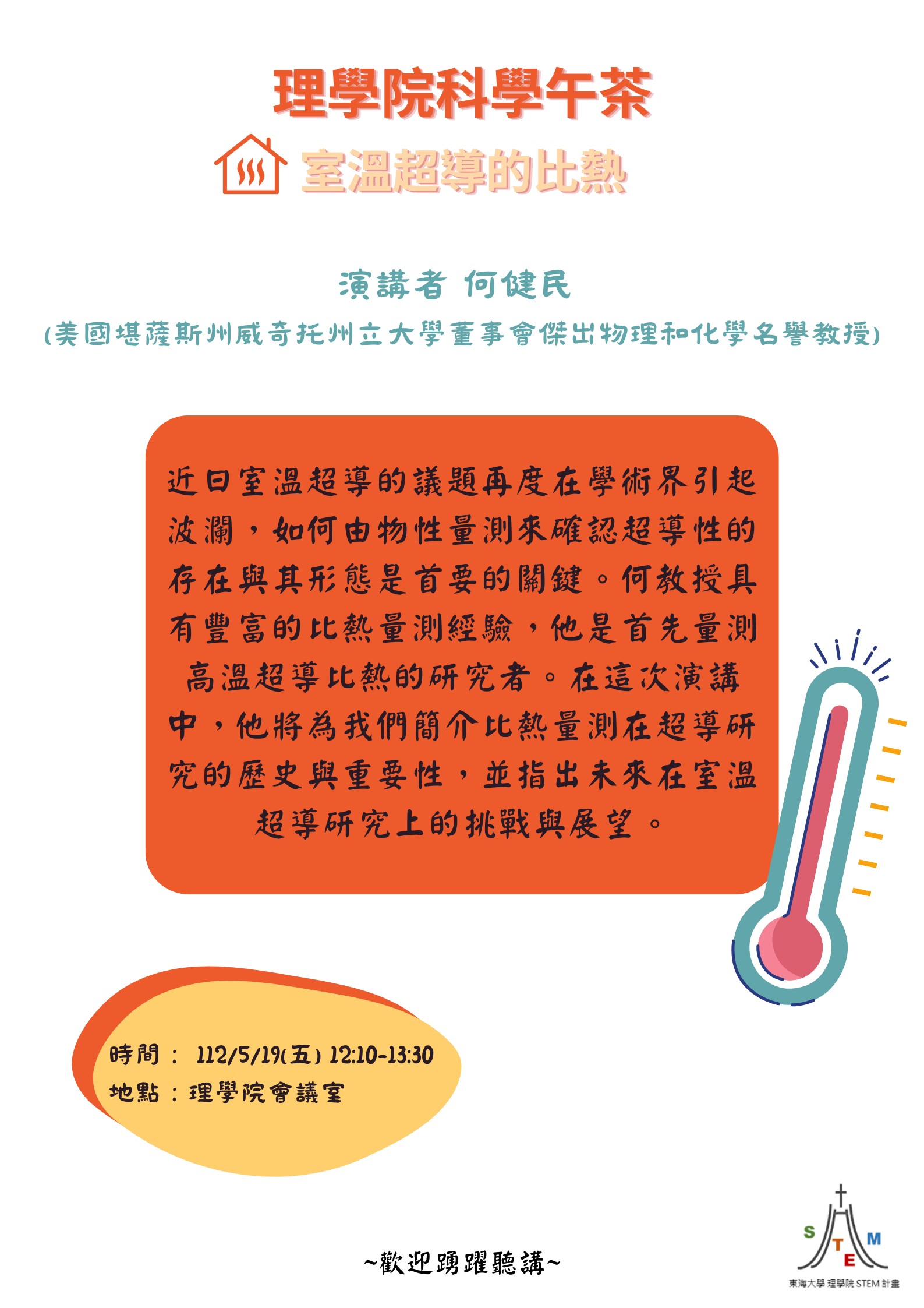 邀請美國堪薩斯州威奇托州立大學董事會傑出物理和化學名譽教授何健民教授前來分享室溫超導的比熱。