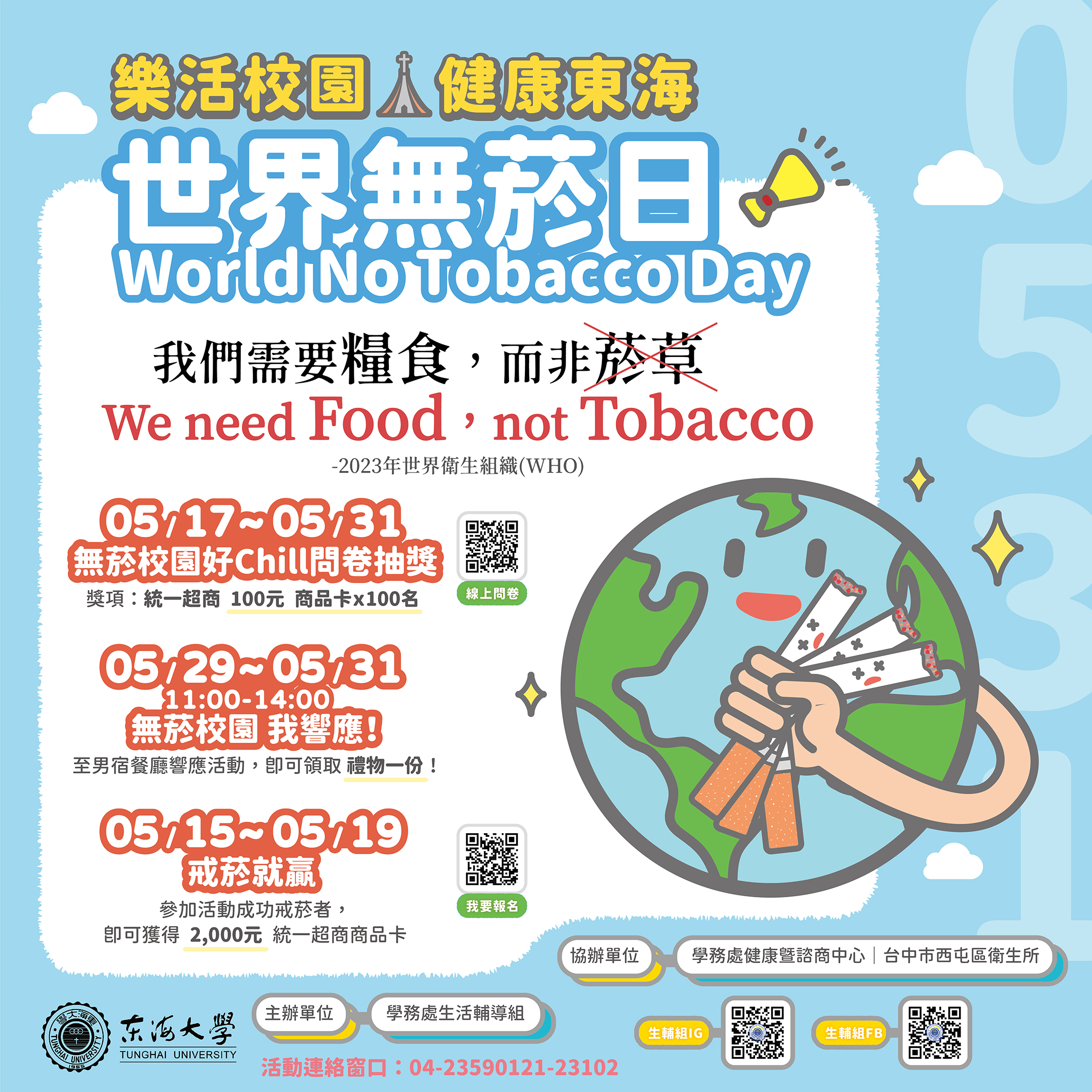 2023年世界衛生組織(WHO) 世界無菸日活動主題為「我們需要糧食,而非菸草 」