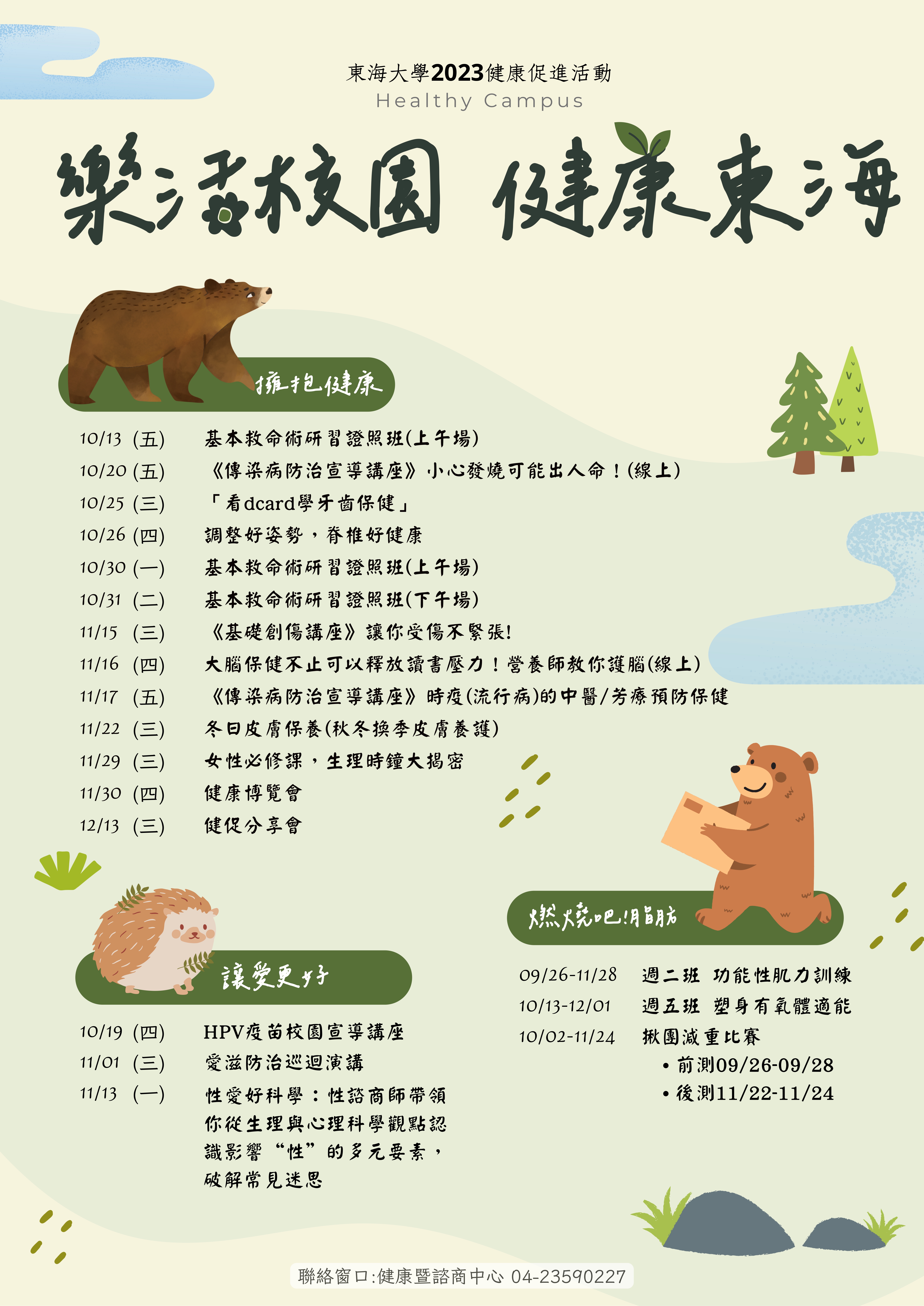 | 承辦人員 | 程翊緁 護理師(約聘) 分機:23436 E-mail:moonpaper@thu.edu.tw |