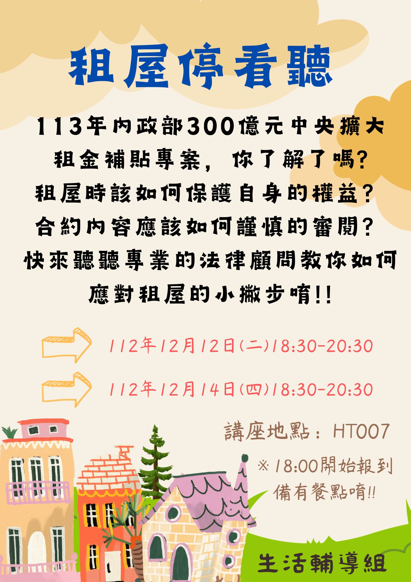 本學期邀請到崔媽媽基金會的法律顧問來告訴你租屋的小撇步唷!!