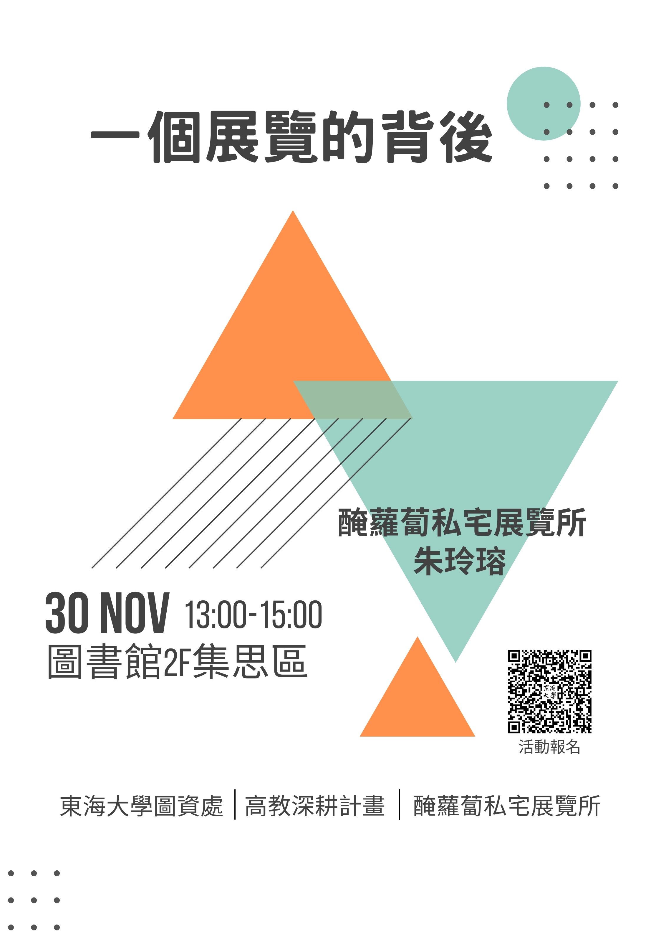 | 11/30 (四) 一個展覽的背後 加入Google行事曆 | 圖書館2F集思區 | 2023-11-30 ~ 2023-11-30 | 13:00 ~ 15:00 | 2 | 50 | 11 |