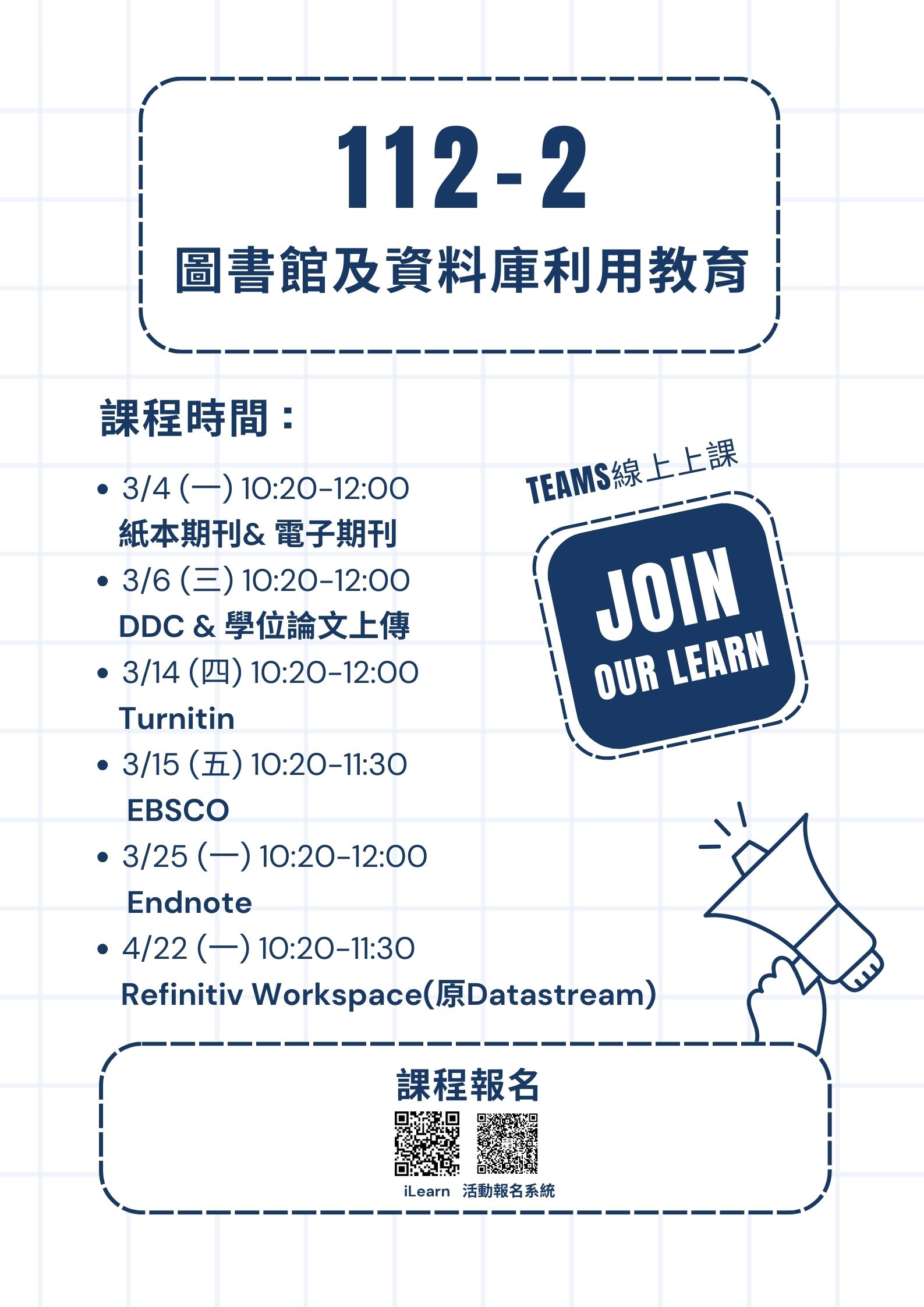 03/15 (五) 10:20-11:30 EBSCO (課程網址:https://ithu.tw/d4Lf5)
