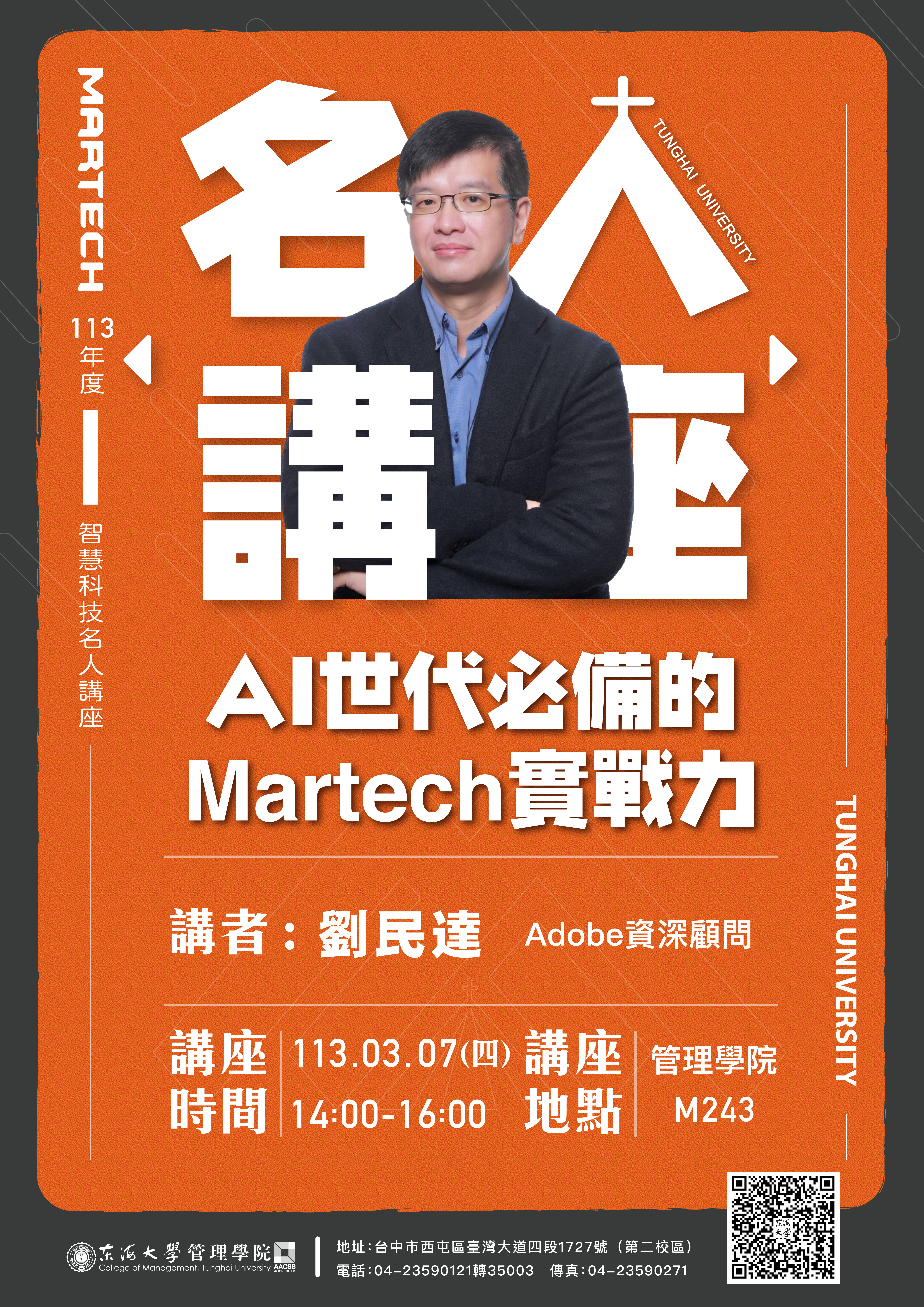 ★東海大學管理學院113年度MarTech 智慧科技名人講座★