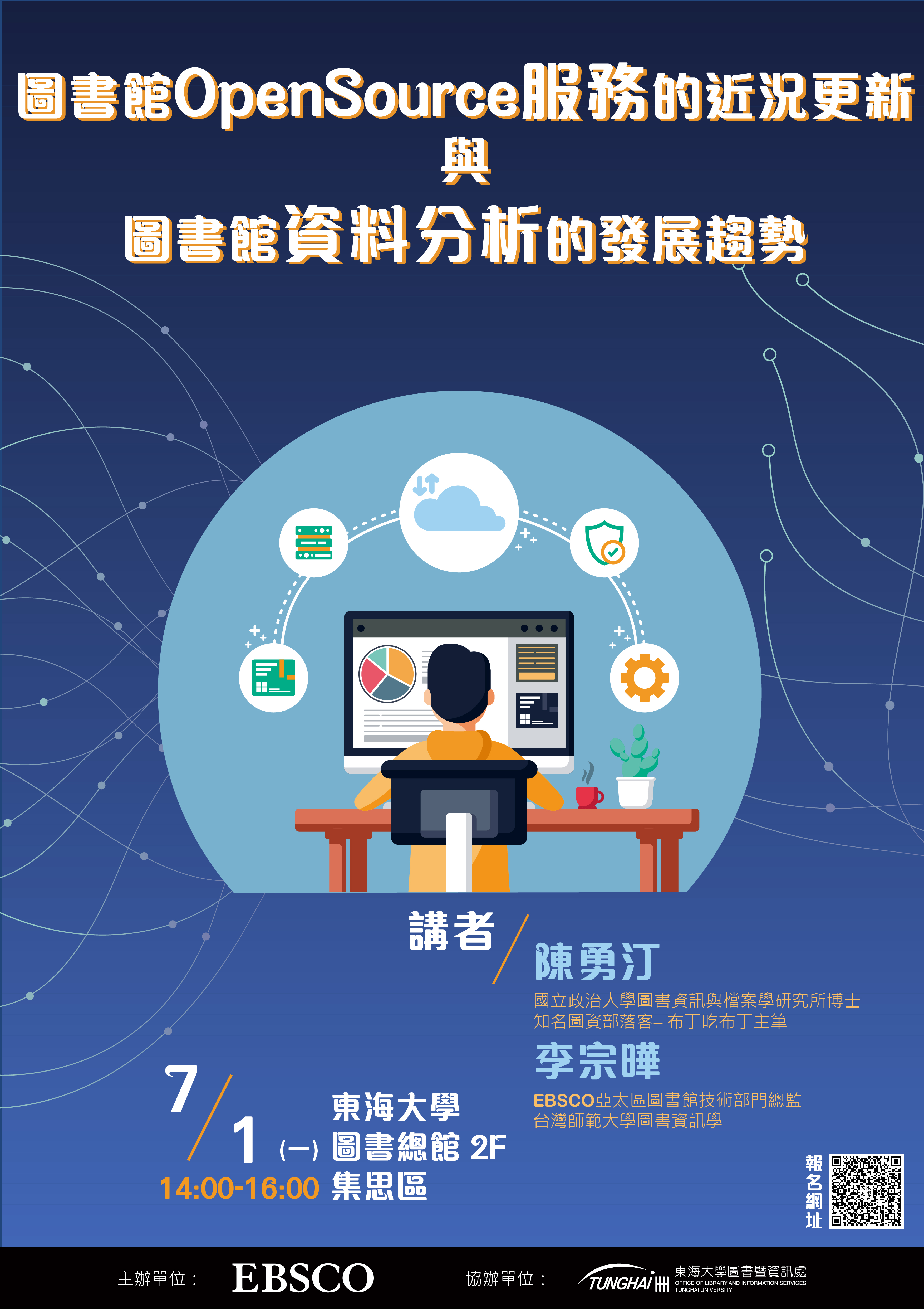| 圖書館OpenSource服務的近況更新與圖書館資料分析的發展趨勢 (中文場) 加入Google行事曆 | 圖書總館2樓 集思區 | 2024-07-01 ~ 2024-07-01 | 14:00 ~ 16:00 | 2 | 60 | 28 |