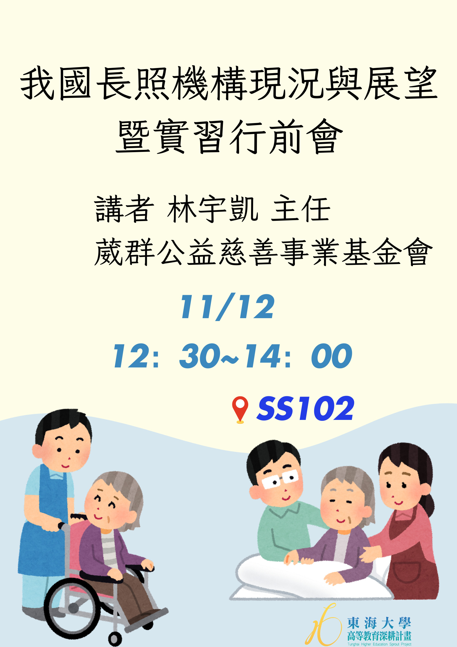 | 主辦單位:高教深耕計畫、行政系。11/12,12:30~14:00,SS102 加入Google行事曆 | SS102 | 2024-11-12 ~ 2024-11-12 | 12:30 ~ 14:00 | 1.5 | 132 | 95 |