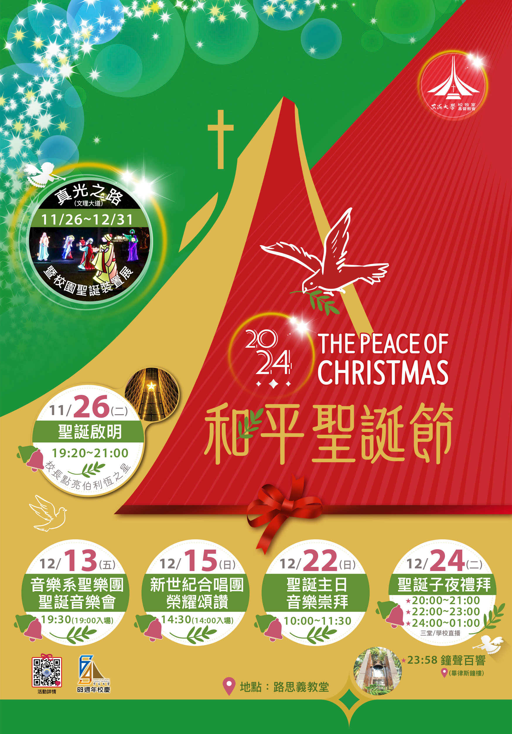 聖誕節,是愛、感恩與希望的象徵。歡迎您和我們一起參與這個盛典,也願這份聖誕的愛與溫暖,成為一份禮物,伴隨著我們度過每一天,讓東海校園充滿愛的力量。