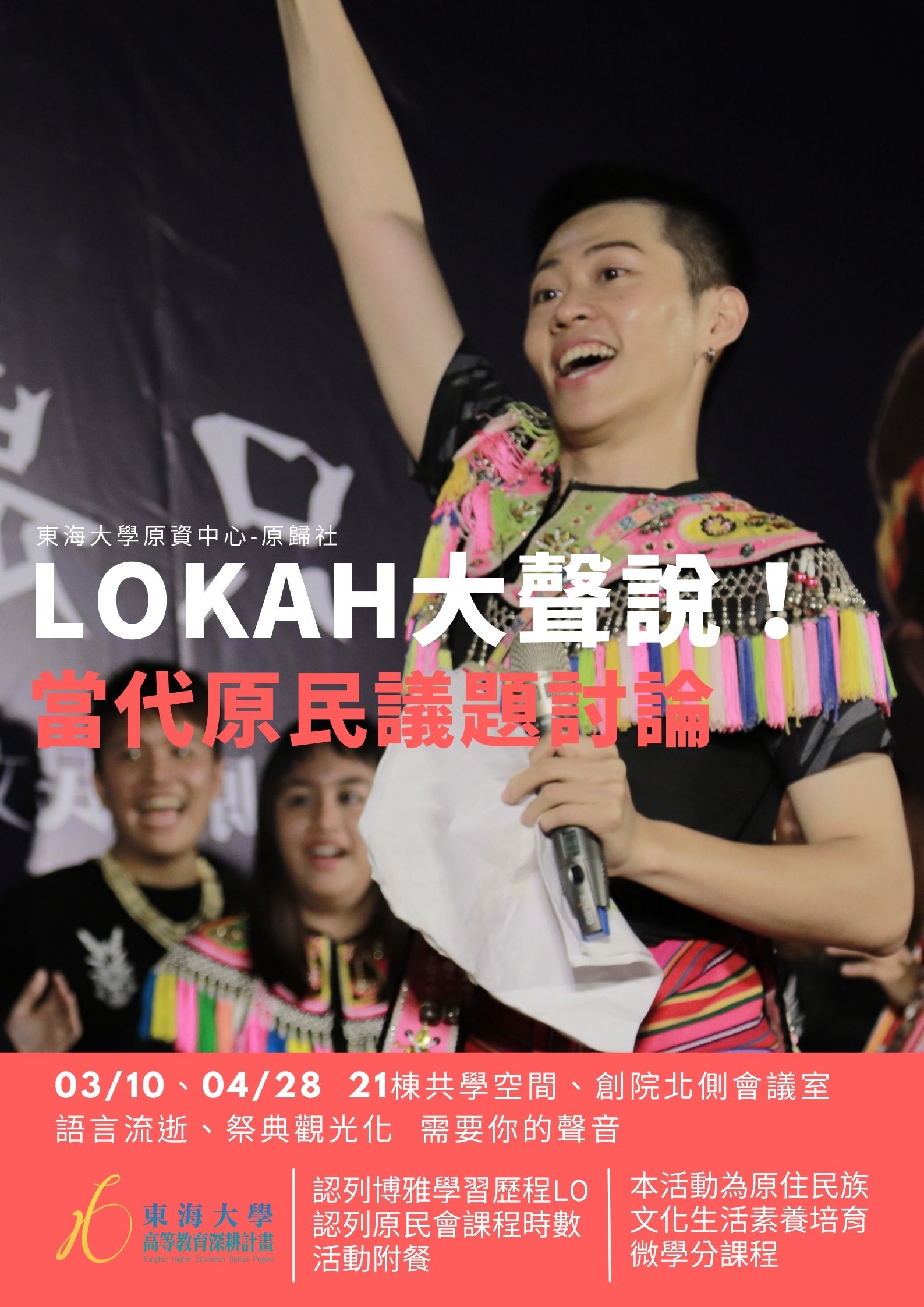 | 03/10 LOKAH 大聲說!當代原民議題討論(I) 加入Google行事曆 | 21棟宿舍1樓共學空間 | 2022-03-10 ~ 2022-03-10 | 18:30 ~ 20:30 | 2 | 40 | 13 |