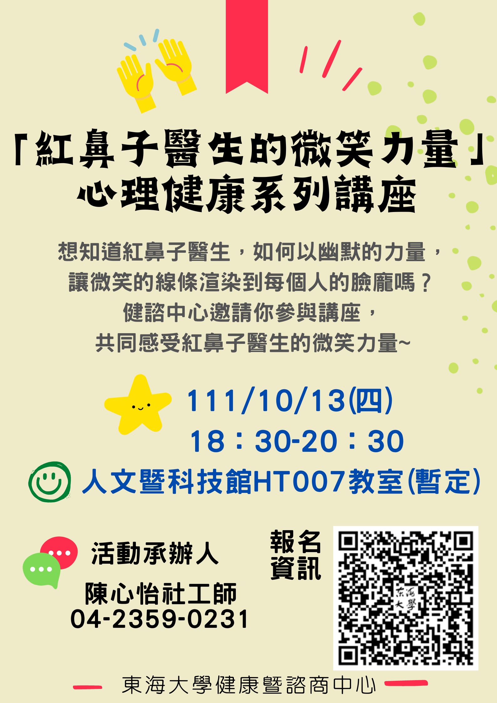 健諮中心邀請你參與講座,共同感受紅鼻子醫生的微笑力量~