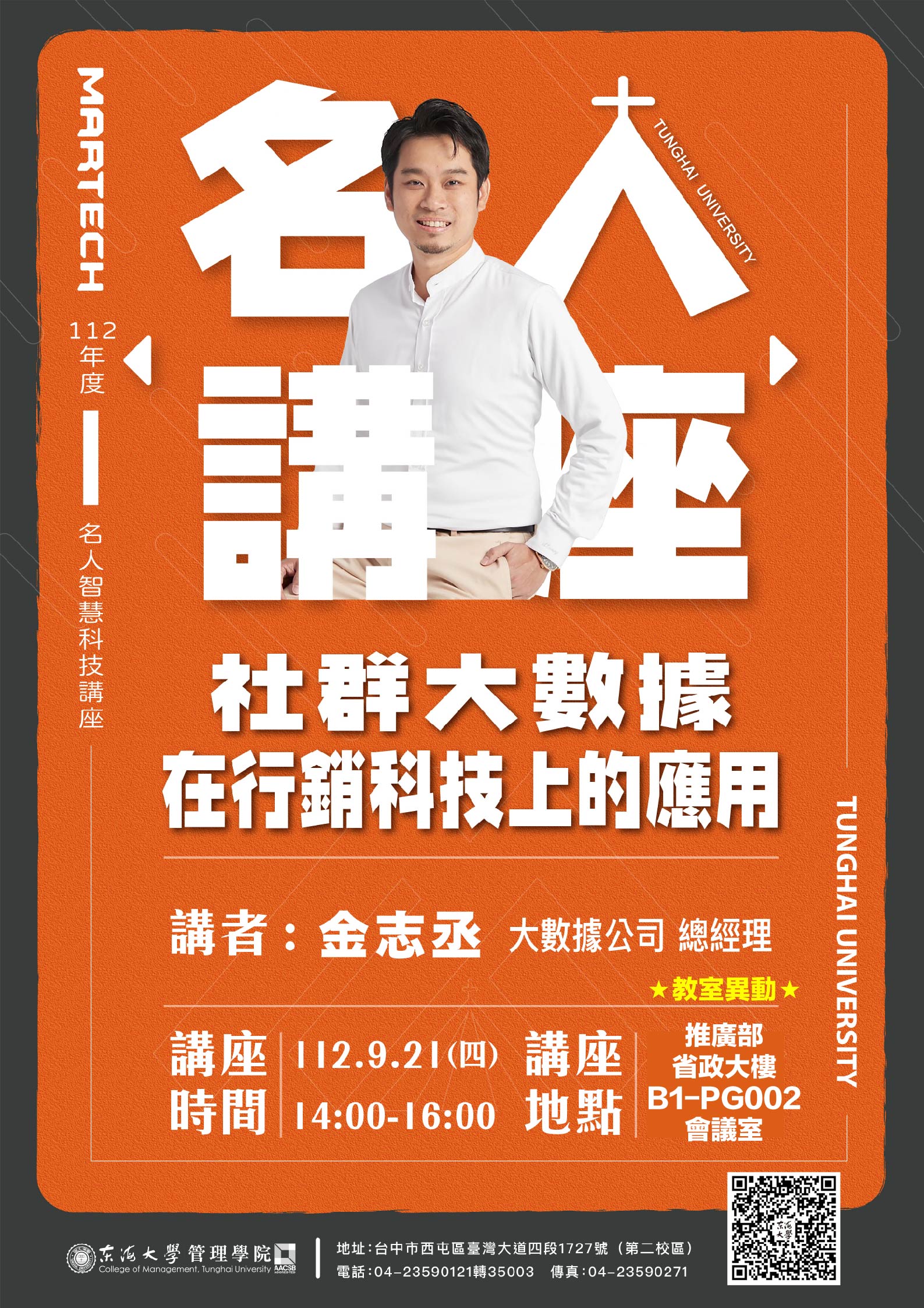 ★東海大學管理學院112年度MarTech 名人智慧科技講座★