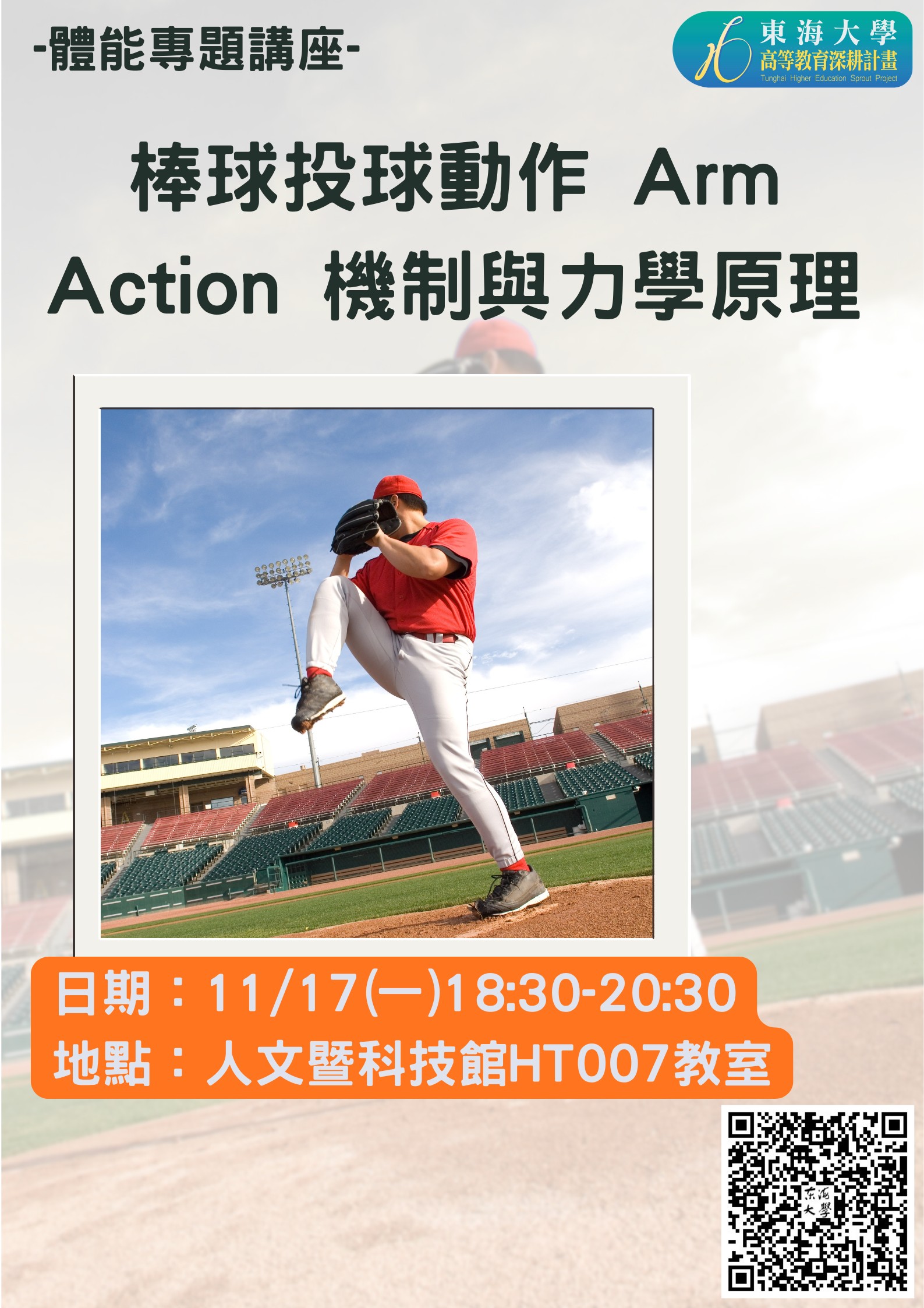 本次活動旨在增進學生對棒球投球動作「Arm Action」機制的理解,透過專業講師講解投球過程中手臂動作的生物力學原理,讓參與者能夠從運動防護及動作分析的角度,學習如何降低運動傷害風險並提升運動表現。