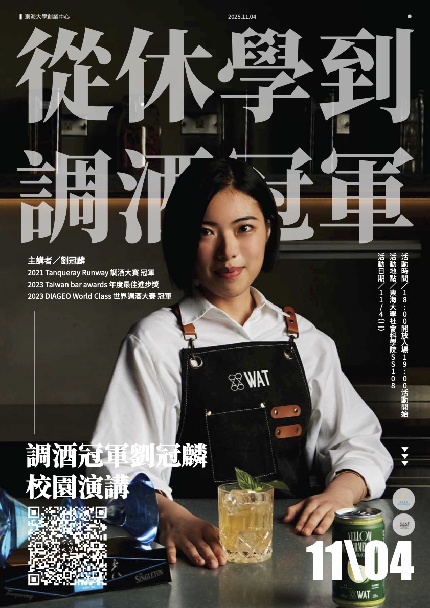 | 「從休學到調酒冠軍」劉冠麟校園演講 加入Google行事曆 | 社會科學院SS108 | 2025-11-04 ~ 2025-11-04 | 19:00 ~ 19:30 | 2 | 100 | 51 |