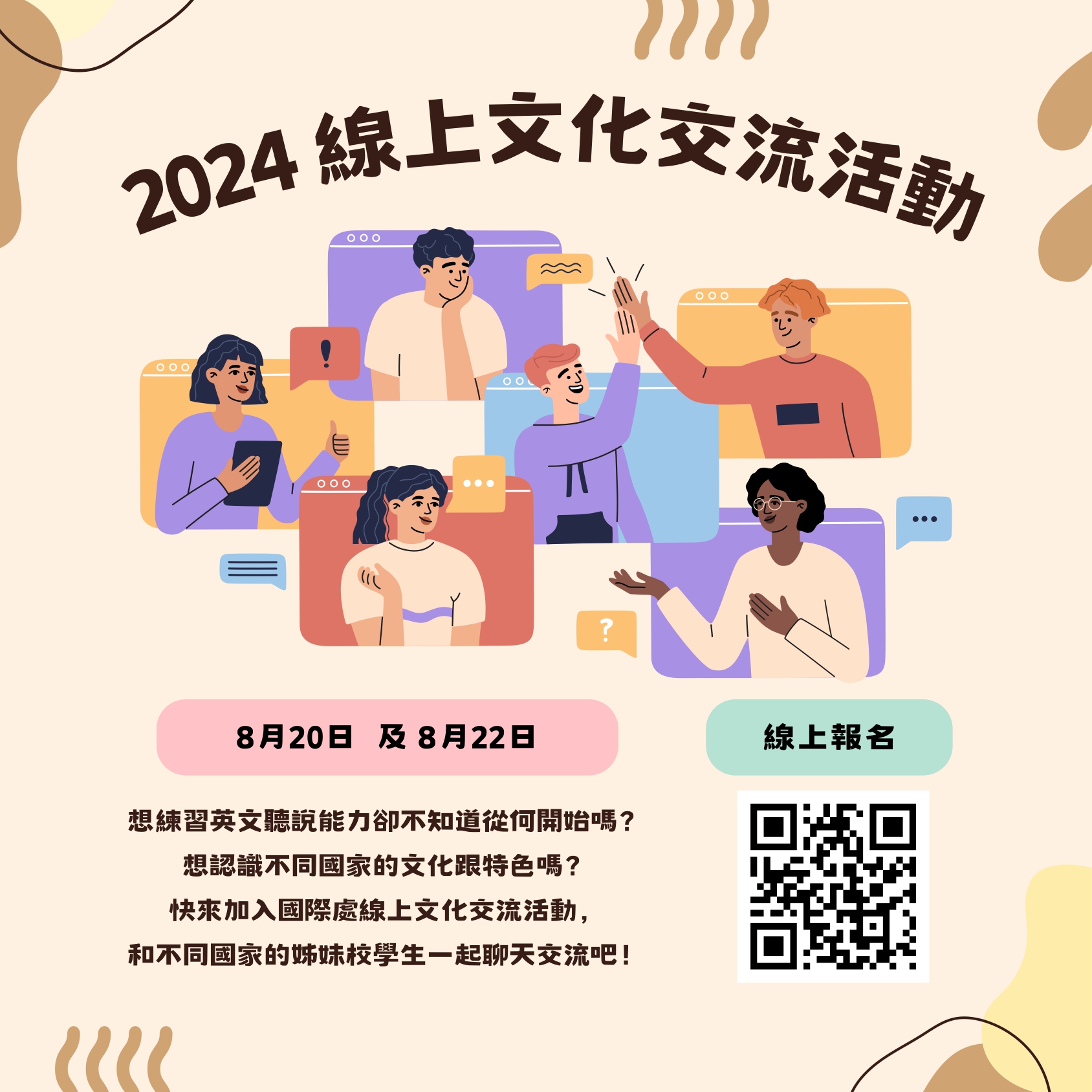 ✨ 這個暑假,快來參加我們的線上文化交流活動吧!✨
