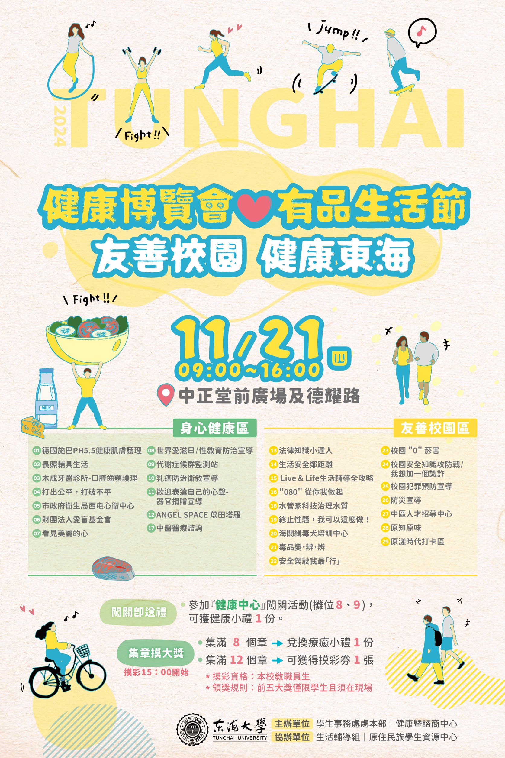| 2024「健康博覽會 ❤ 有品生活節」 加入Google行事曆 | 中正堂前廣場及德耀路 | 2024-11-21 ~ 2024-11-21 | 09:00 ~ 16:00 | 7 | 不限 | 0 |