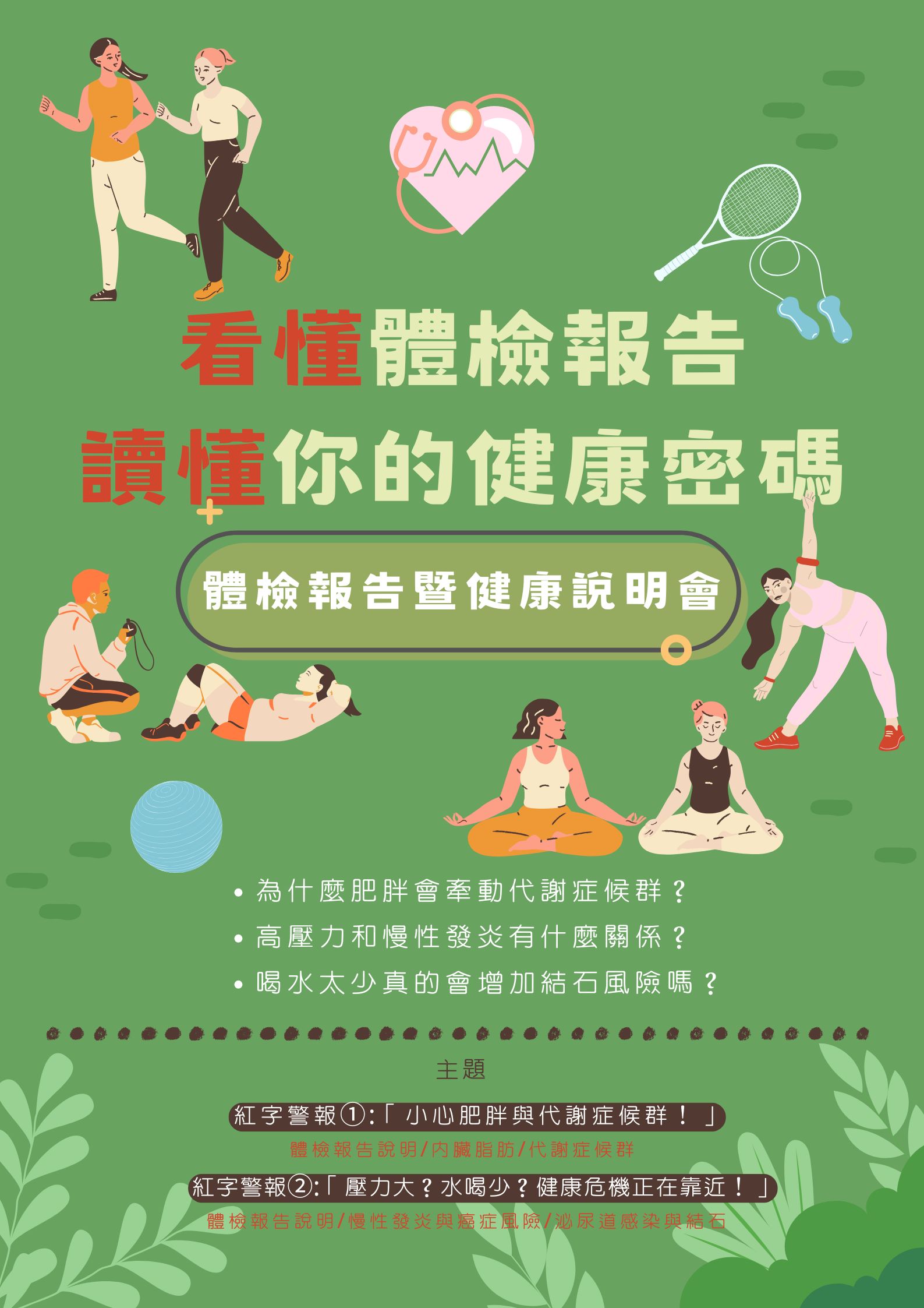 透過專業解說與分享,幫你把紅字變成行動指南,讓健康更清楚、生活更安心!